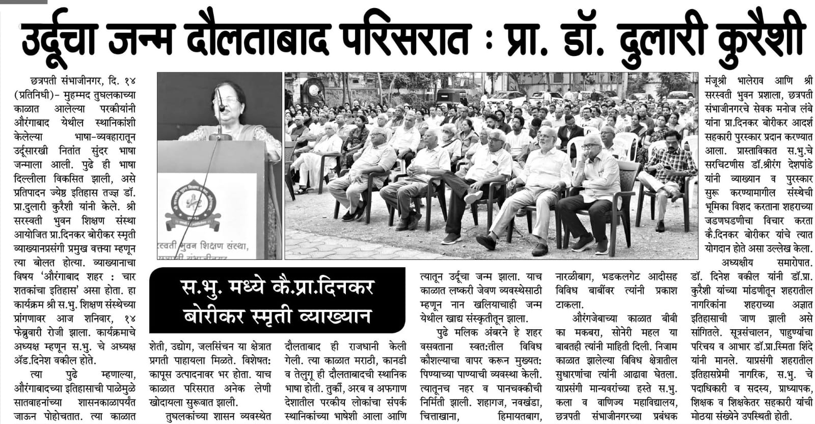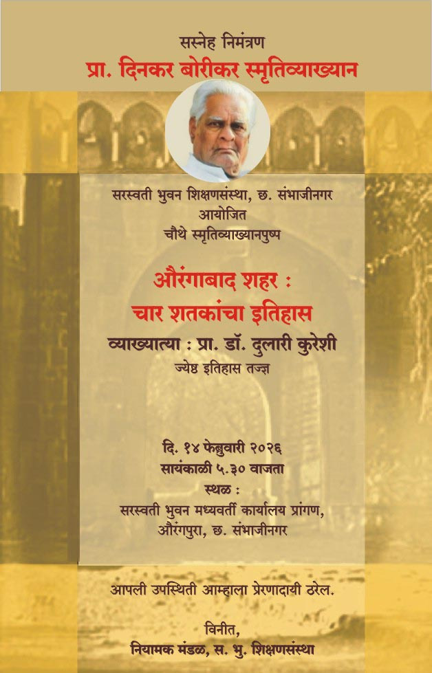 - प्रा. दिनकर बोरीकर स्मृतिव्याख्यानमालेचे आयोजन दि. १४ फेब्रुवारी २०२६ .