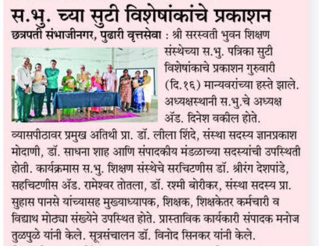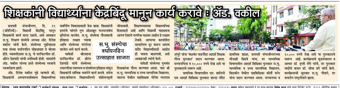 - स. भू. शिक्षण संस्था, छत्रपती संभाजीनगर येथे स्वामी विवेकानंद अध्यासन केंद्र व गोविंदभाई श्रॉफ अध्यासन केंद्राचा उद्घाटन समारंभ मा. जिल्हाधिकारी श्री. दिलीप स्वामी यांच्या हस्ते संपन्न.