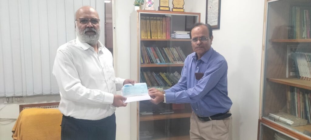 या प्रसंगी प्रा. डॉ. कवठेकर यांनी सदर रकमेचा धनादेश